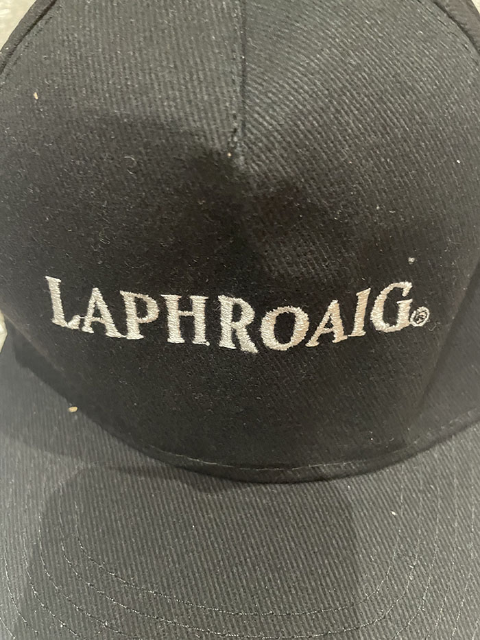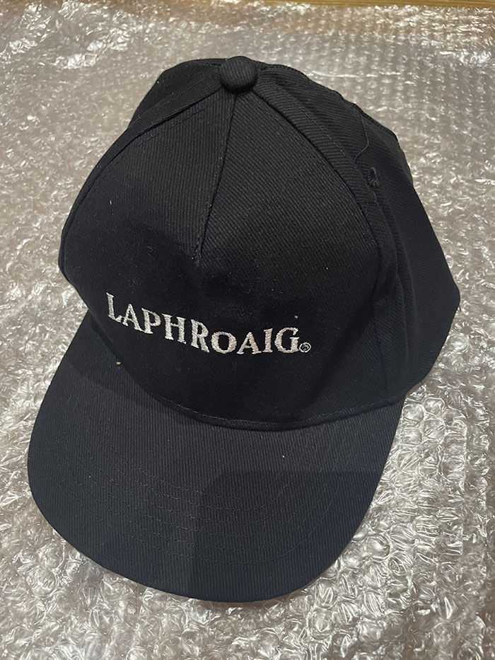 laphroaig(ラフロイグ)のブラックのベースボールキャップです。グレーのものと比べ、シンプルにデザインされています。