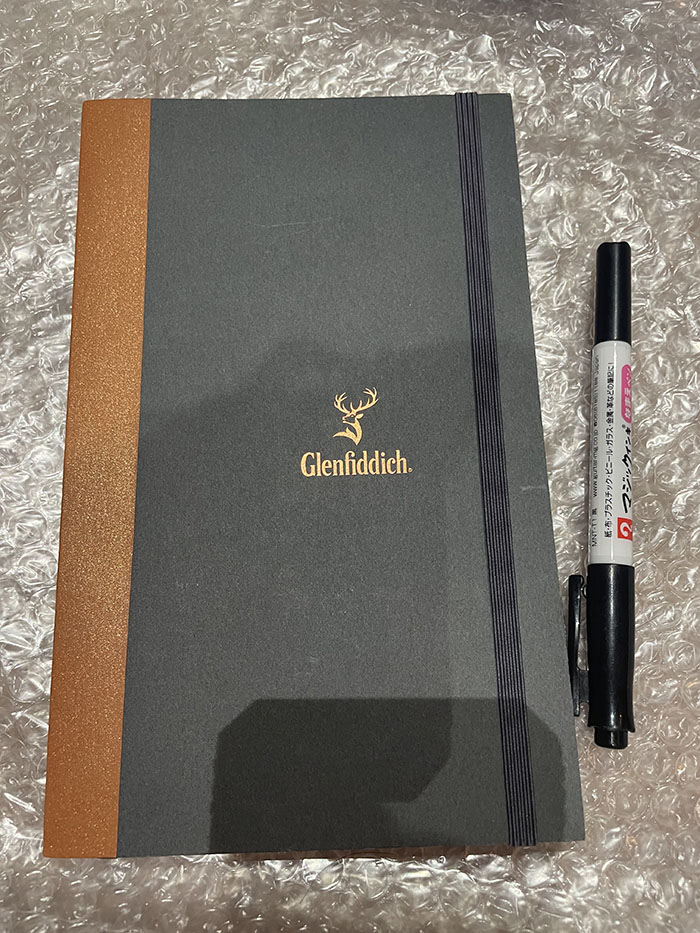Glenfiddich グレンフィディックのノートです。 金の印刷がおしゃれですね。 縦約21cmm、横約13cm