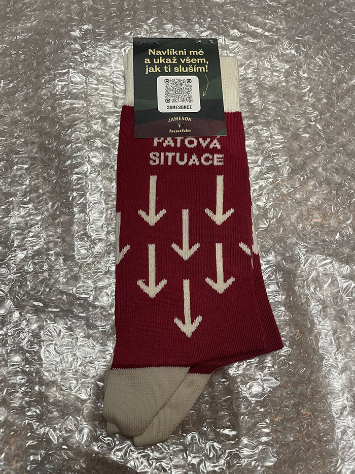 ジェムソン(JAMESON)(jameson & FUSAKLE) 赤白抜き矢印の靴下です。 サイズはヨーロッパサイズのフリーサイズ