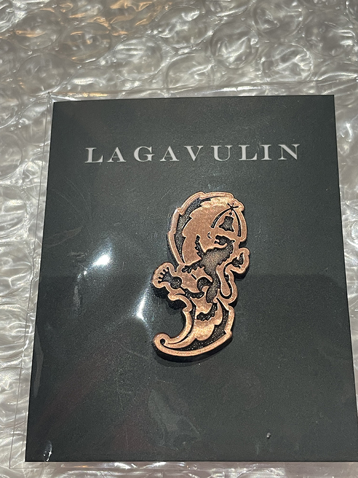 ラガヴーリンのピンバッジです。 銅色のプレート切り抜きタイプ。 新作なのか、初めて見ます。 サイズ 約横1.6cm 約横3.0cm