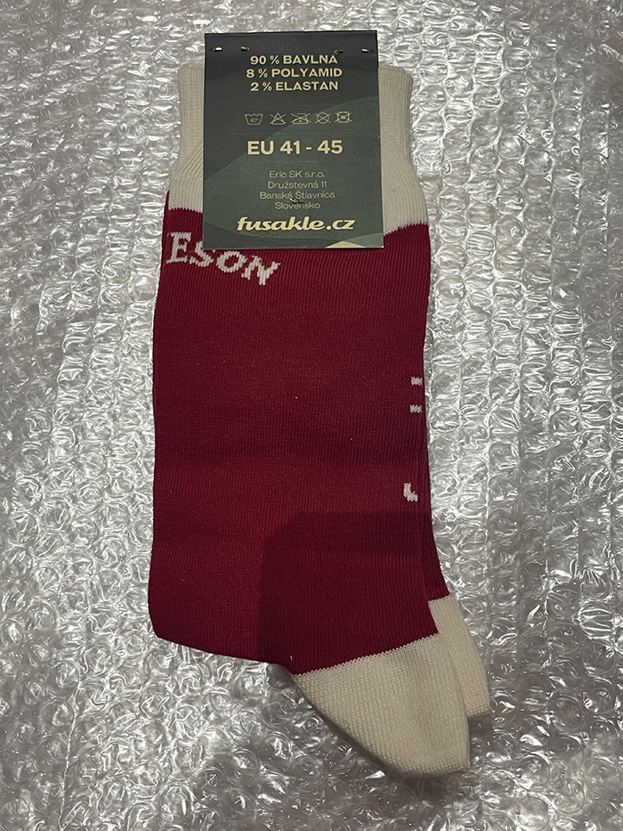 ジェムソン(JAMESON)(jameson & FUSAKLE) 赤の靴下です。 サイズはヨーロッパサイズのフリーサイズ