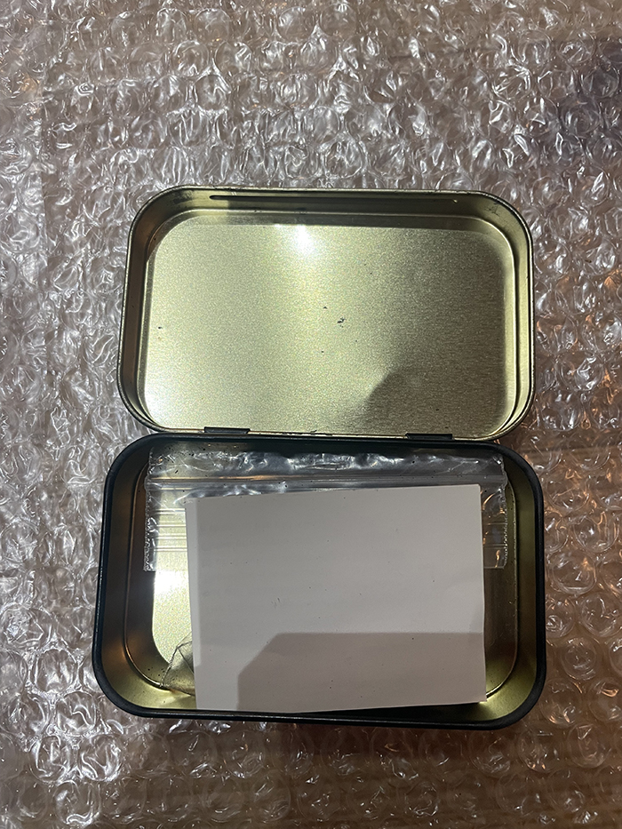 ブリキのケースに凹み有りと、縁にサビ、