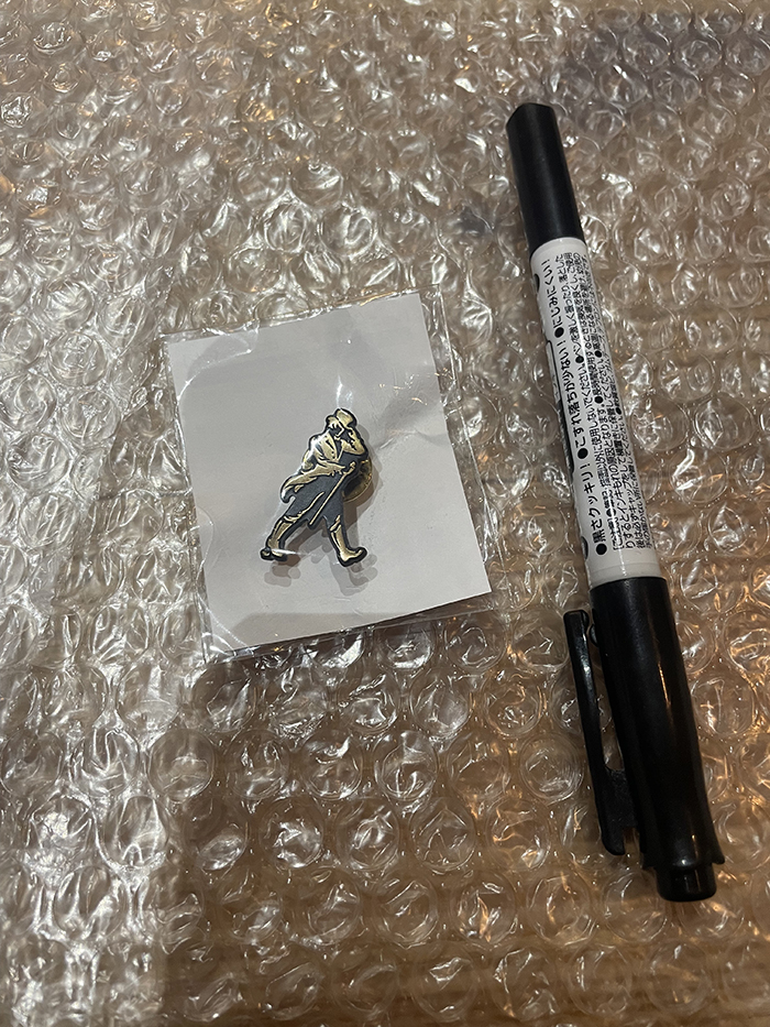 ジョニーウォーカーのいぶし銀風のピンバッジです。