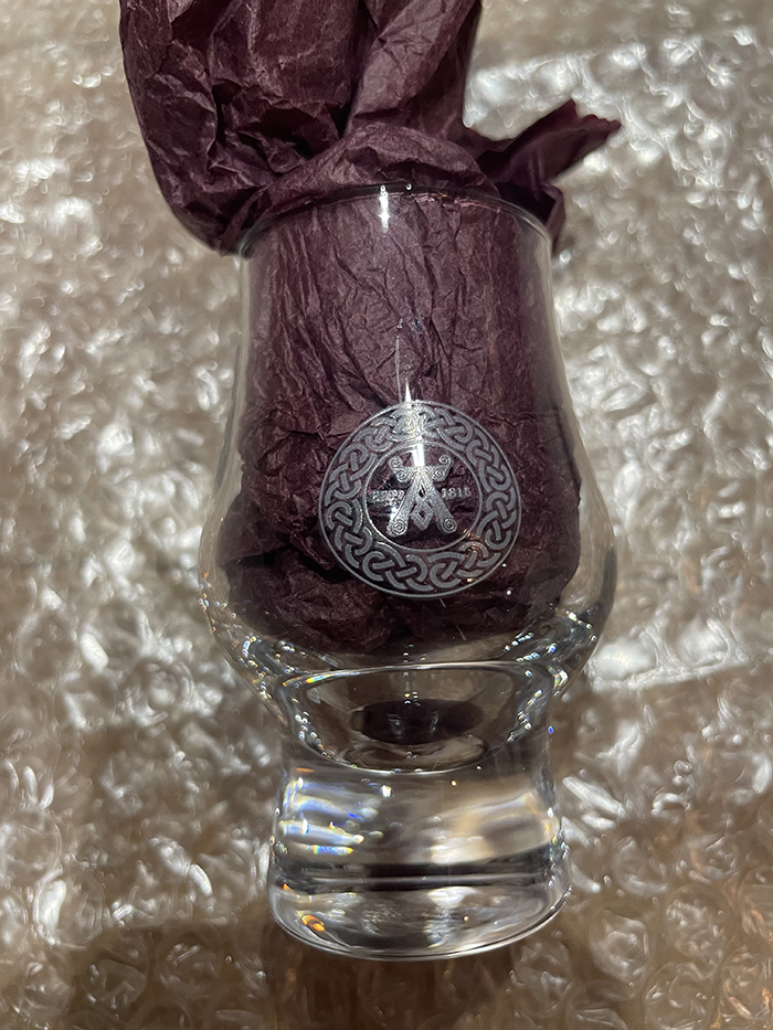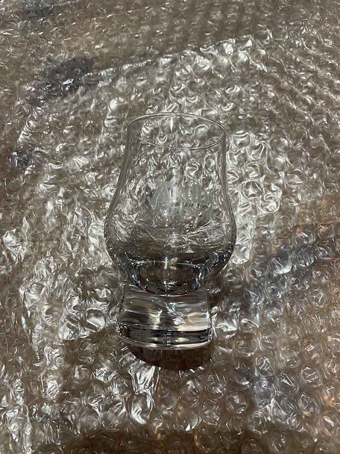 2019年までは年が入っていたので、古いものか、最新のものかどちらかだと思います。が、2020年は早々に蒸留所を閉鎖したはずなので、古いものなのかなと思われますが、この5年、年度の書かれたグラスがでまわっていないので、年度の記載はやめたのだと思っております。