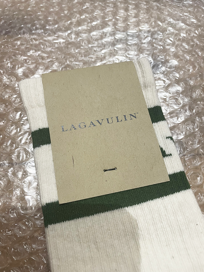 lagavulin(ラガヴーリン)の靴下です。 タグでみにくいですが、ちゃんとネームもはいっています。