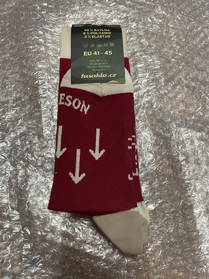 ジェムソンのコラボ 赤い白抜きの矢印靴下