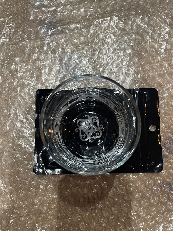 箱なしのものです。少し安くしております。 ロゴがエッチング加工されたグラスです。このグラスもくびれがあってセクシーです。 重心は下にあるのでこぼれにくいです。