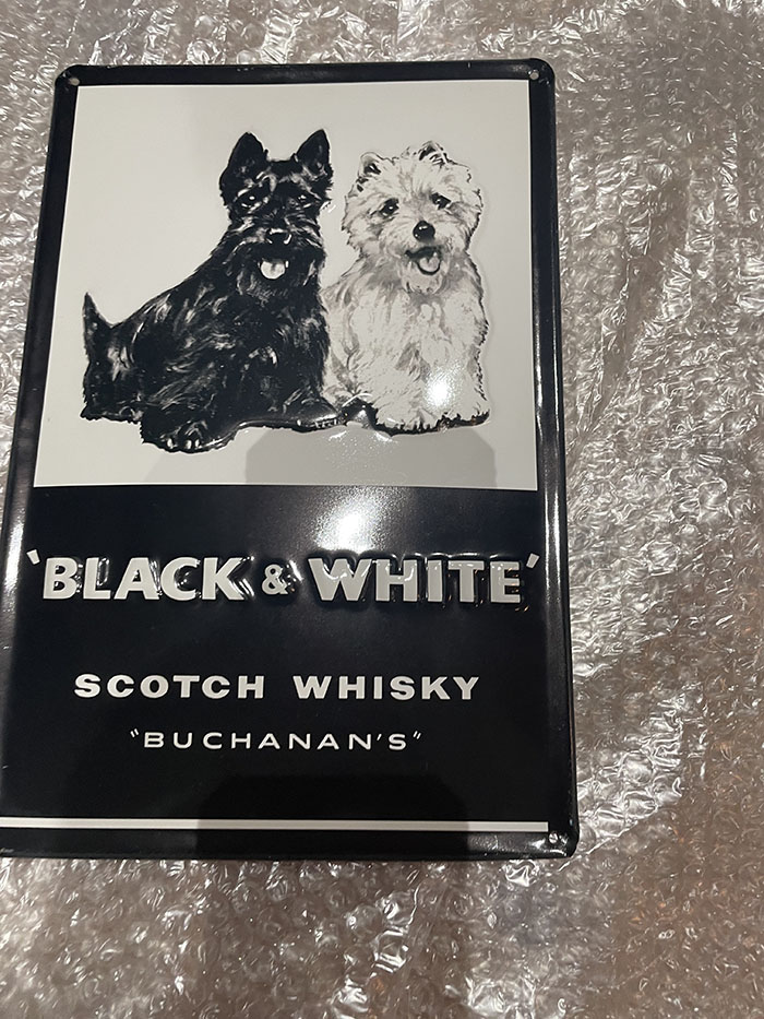 スコットランドの代表的犬種であるスコティッシュ・テリア(黒)とウエスト・ハイランド・ホワイト・テリア(白)のデザインです。こちらは中古でクリーム色タイプ