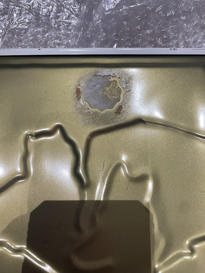 裏面に吊っていた器具の両面テープらしいものが残っています。