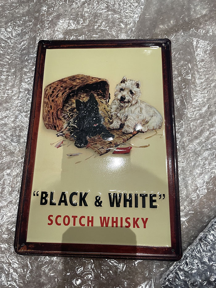 スコットランドの代表的犬種であるスコティッシュ・テリア(黒)とウエスト・ハイランド・ホワイト・テリア(白)のデザインです。こちらは中古で黄色タイプ