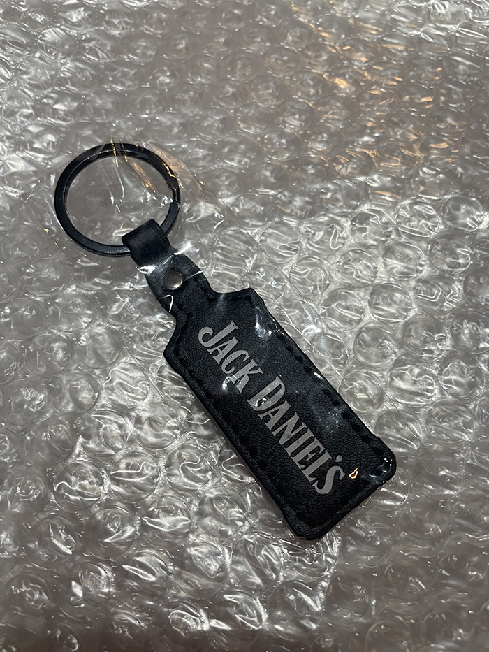 Jack Daniel's(ジャックダニエル) ボトル型合皮キーホルダーです。 横約10.5CM
