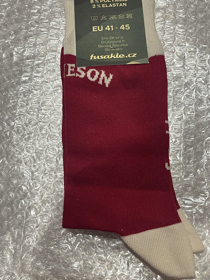 ジェムソン(JAMESON)(jameson & FUSAKLE) 赤の靴下です。 サイズはヨーロッパサイズのフリーサイズ
