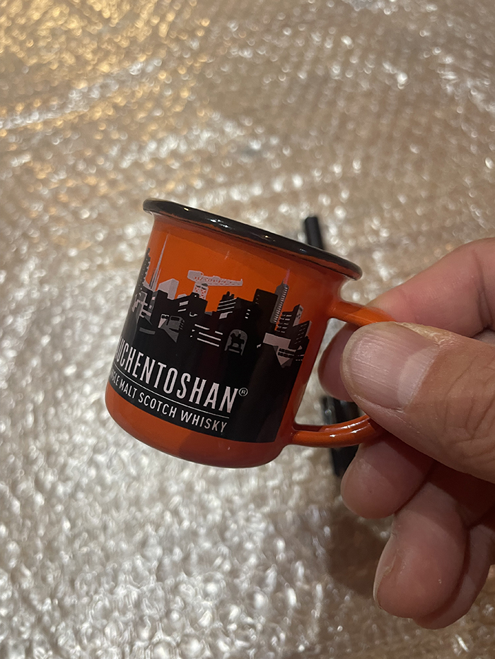 オーヘントッシャン(auchentoshan)ホーローかわいい小型マグ(オレンジ黒)