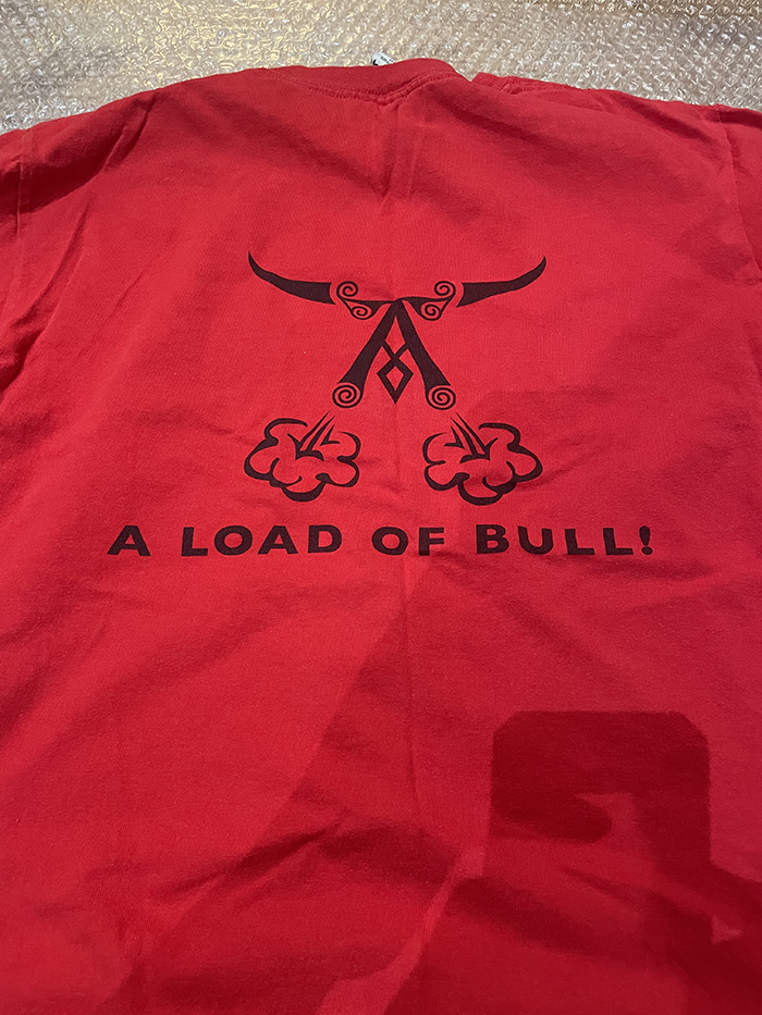 Tシャツにも同様に「A LOAD OF BULL!」が記載されています。