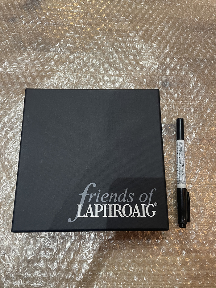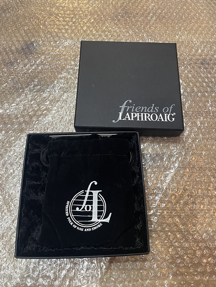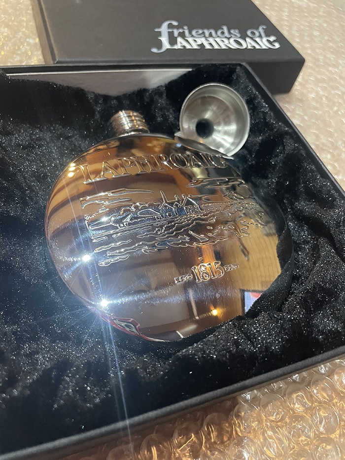 Laphroaig(ラフロイグ)蒸留所のステンレススキットルです。 ロゴタイプと蒸溜所がエンボス加工してあります。ふくろ、ケース付き。