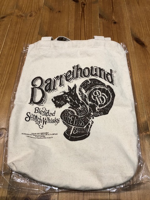ブレンテッドウイスキーのバレルハウンドのトートバッグ。 珍しいのと、樽と犬のモチーフがかわいいので、仕入れてしまいました。 1個だけです。