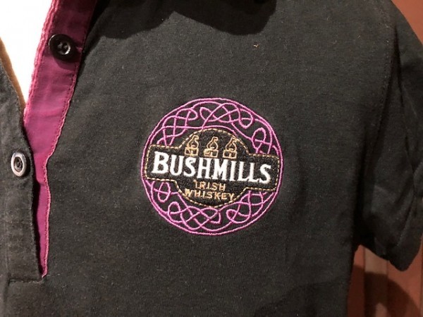 BUSHMILLS(ブッシュミルズ)ポロシャツです。 サイズはイギリス14なのでS~Mサイズです。 胸ロゴ以外にも、タグ、サイドタグにもロゴネームがついています。