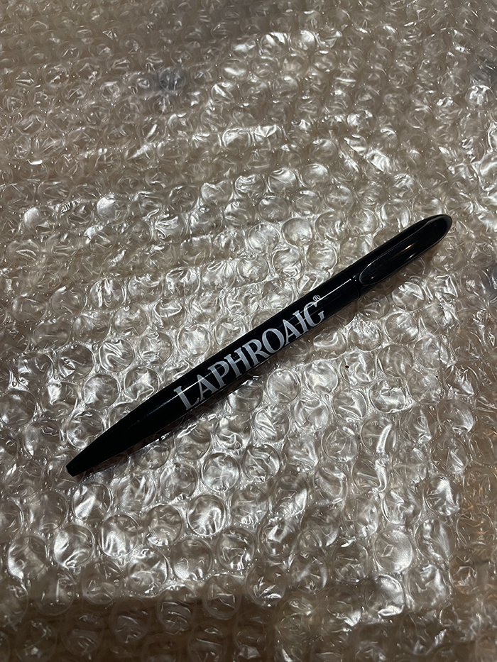 ラフロイグ蒸留所のボールペンです。ロゴ入り。