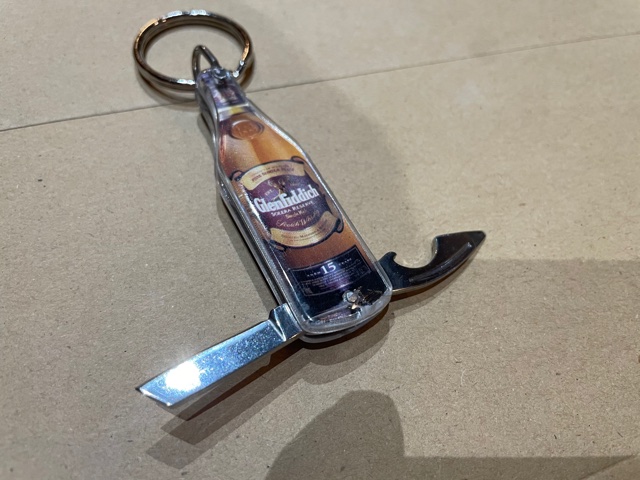Glenfiddich グレンフィディック 機能付キーホルダー ナイフと栓抜きがついています。 栓抜きは実際使えるのだろうかって感じの小ささです。