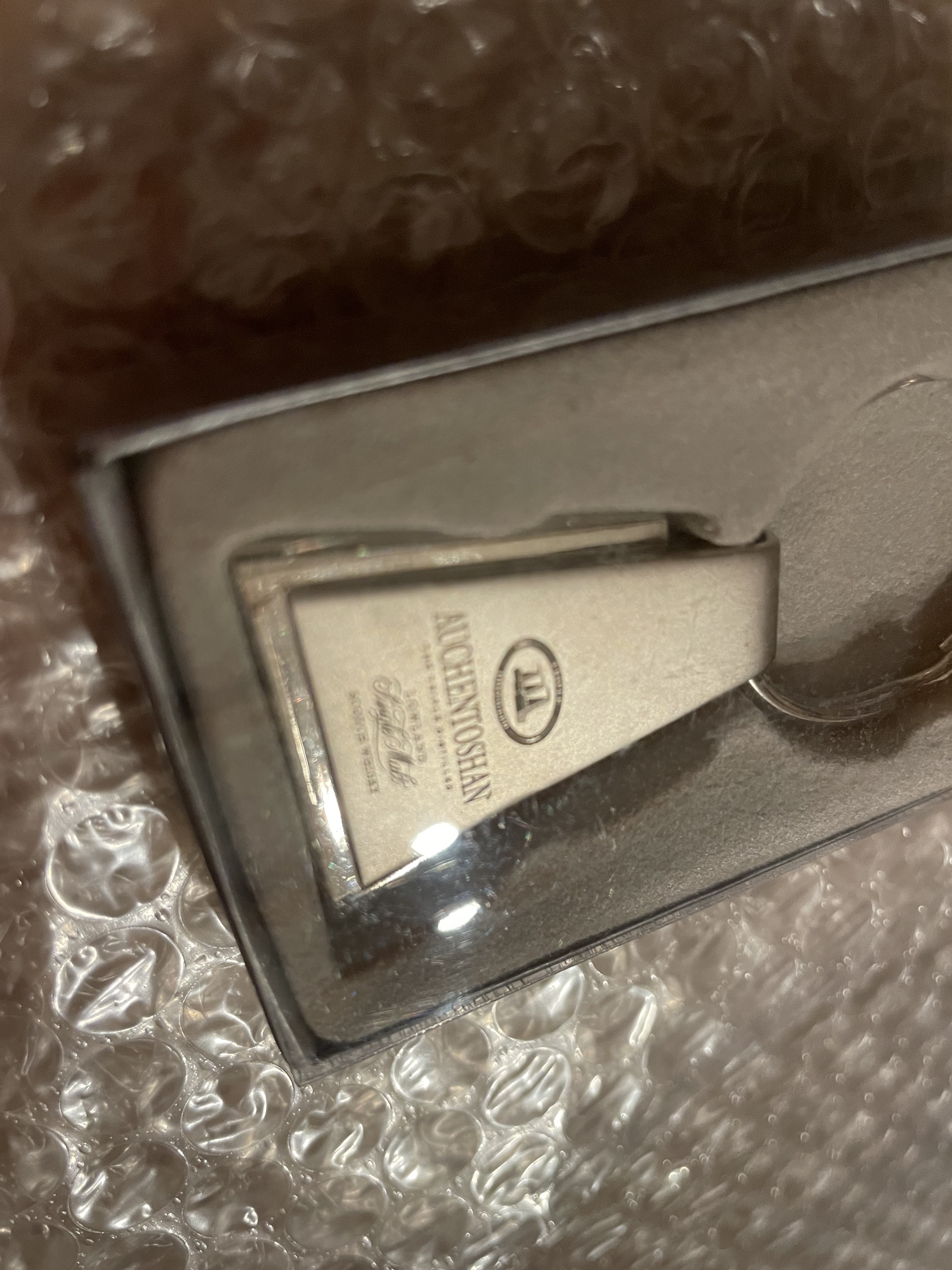オーヘントッシャン(auchentoshan)の 三角形のキーホルダーです。 7cm