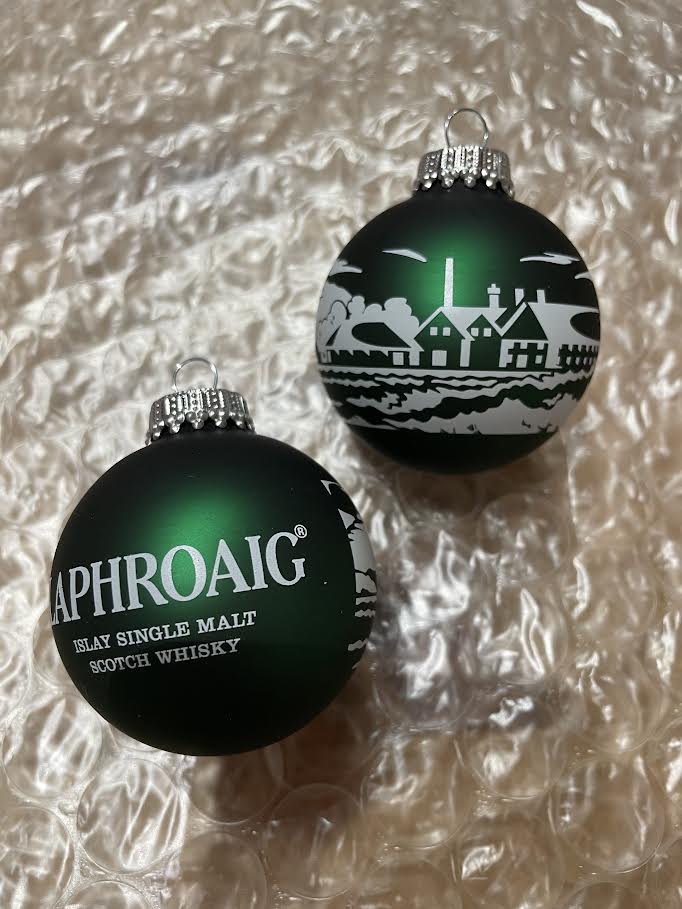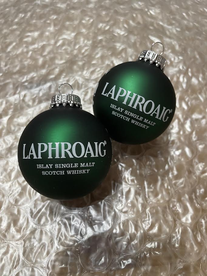 laphroaig(ラフロイグ)ロゴと蒸留所が印刷されたクリスマスオーナメントです。 2個1セットです。
