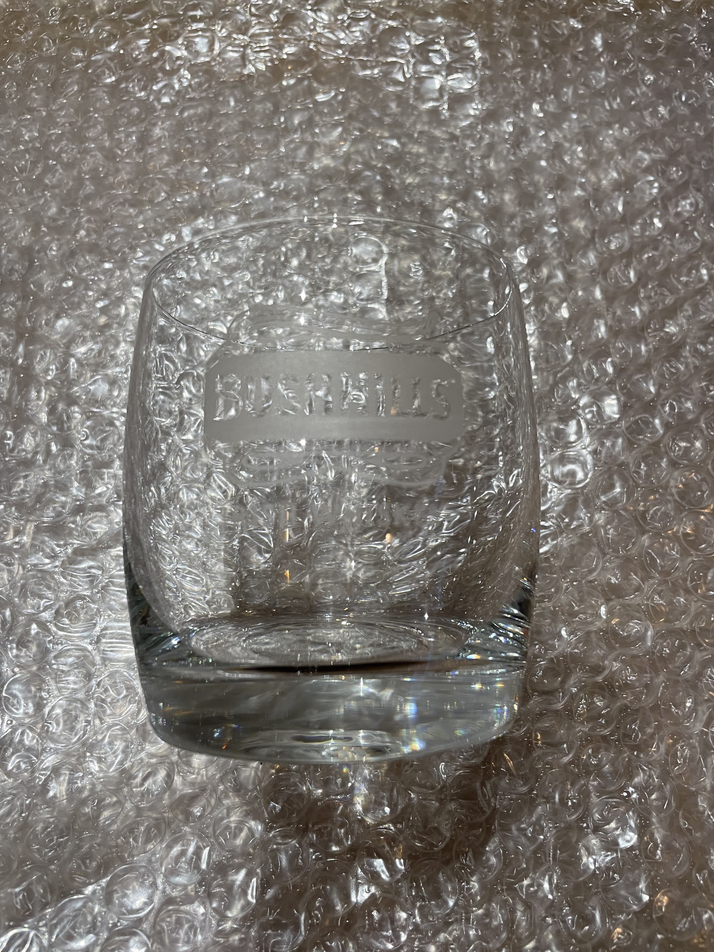 スコットランドじゃないです。アイリッシュウイスキーのブッシュミルズのグラスです。ロゴがエッチング加工してあります。