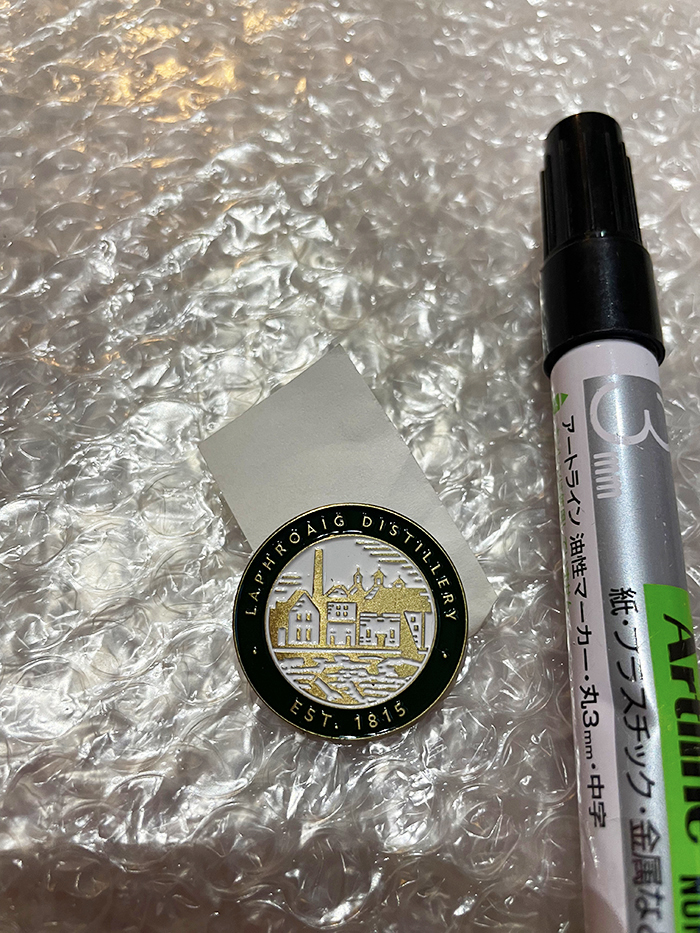 laphroaig(ラフロイグ)の蒸留所入りピンバッジです。 珍しいタイプです。