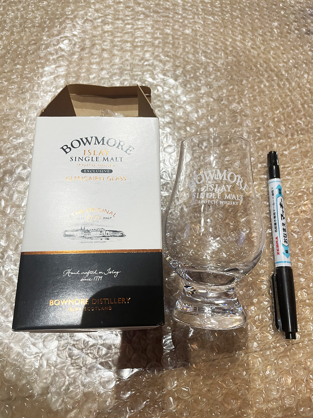 Bowmore(ボウモア)箱入りグラスです。 高さ 約11.5cm