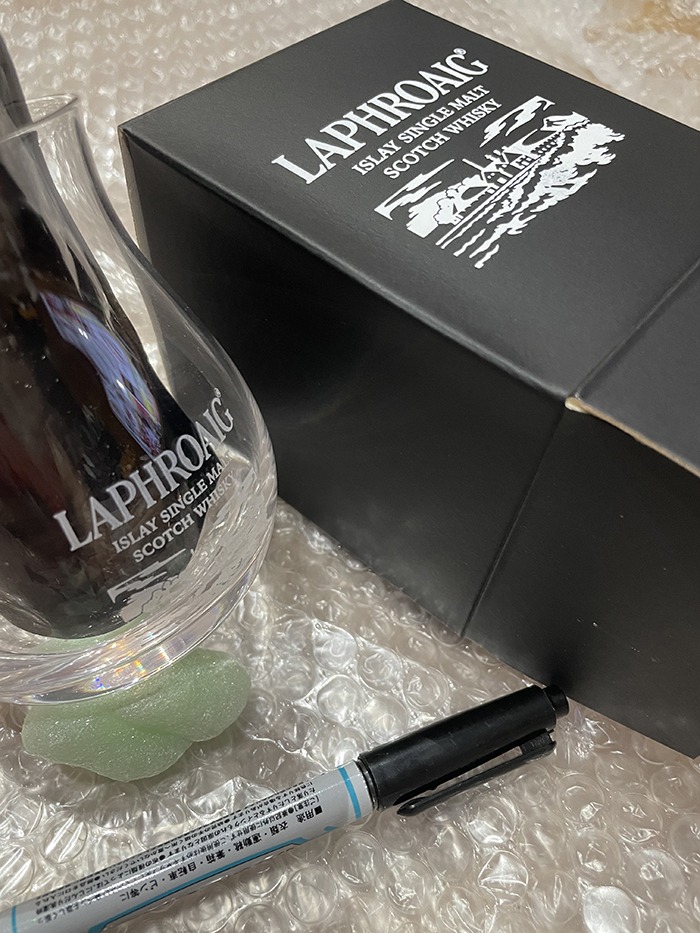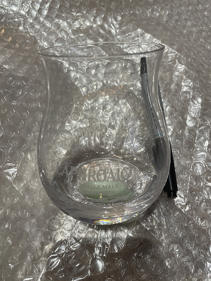 laphroaig ラフロイグのチューリップ型蒸留所グラスです。 蒸留所のエッチングがあります。 そこそこ大きいサイズです。 このタイプは初めての入荷です。