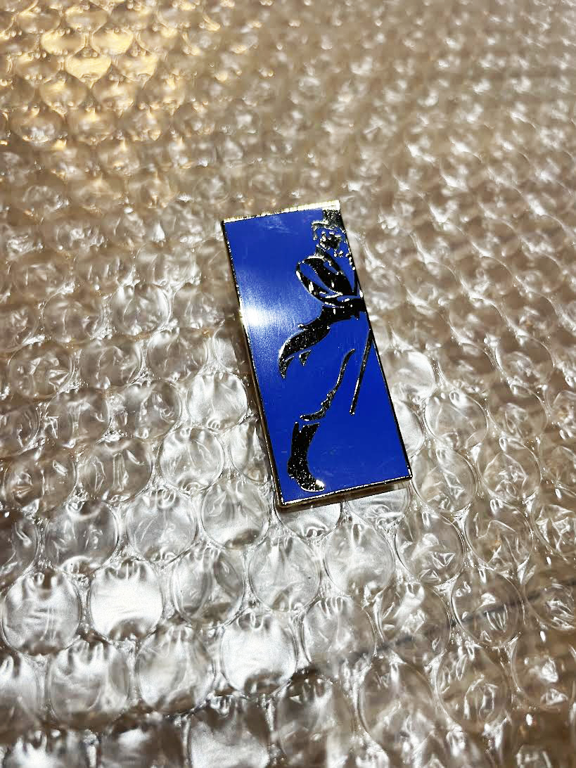 ジョニーウォーカー(Johnnie Walker)シルエット四角ピンバッジ(青)です。 そこそこ大きいです。 約幅1.2cm、高さ3cm