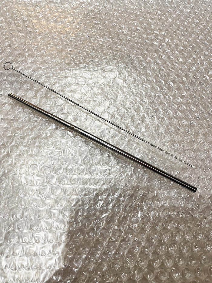 ARDBEGのロゴの入った金属ストローです。 掃除用のブラシも付属しています。