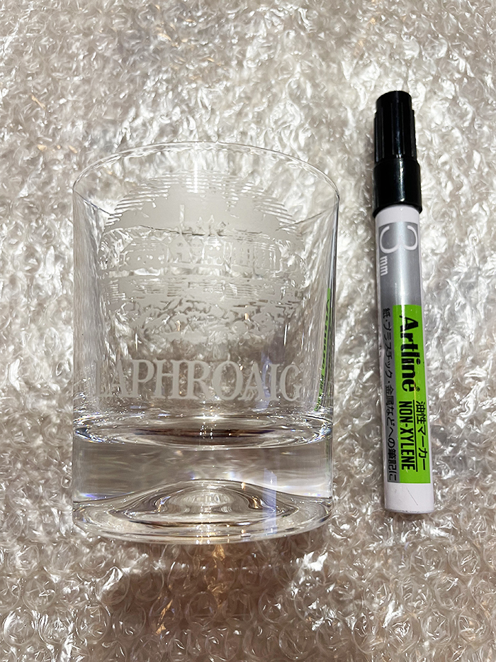 laphroaig ラフロイグの蒸留所がエッチングで表現されたグラスです。 蒸留所のエッチングがあります。 そこそこ大きいサイズです。