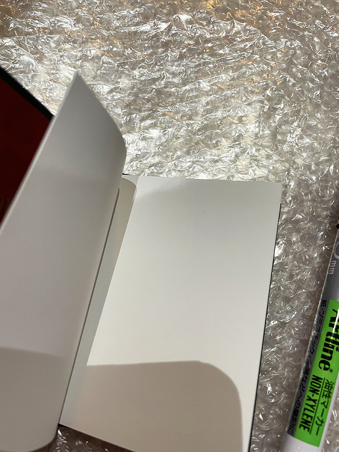 表面がPP加工してあり、光の反射で少し傷ついたように見えます。