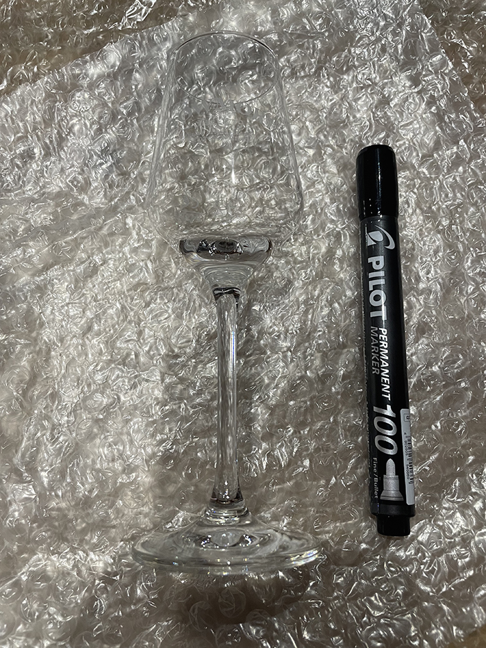 Bowmore(ボウモア)ロゴのついた背の高いグラスです。