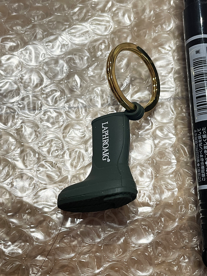 ラフロイグの長靴のキーホルダーです。 ちゃんとゴムでできています。ロゴ付き
