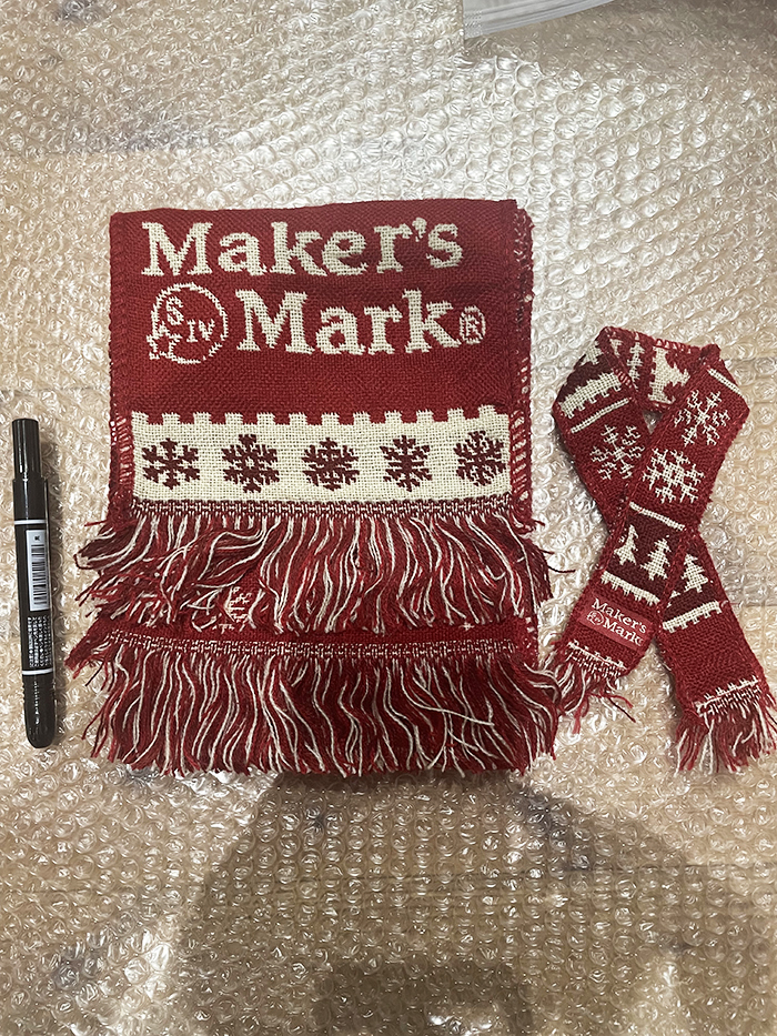 メーカーズマーク(Maker's Mark) 赤マフラーと、小さなボトル用マフラーのセットです。