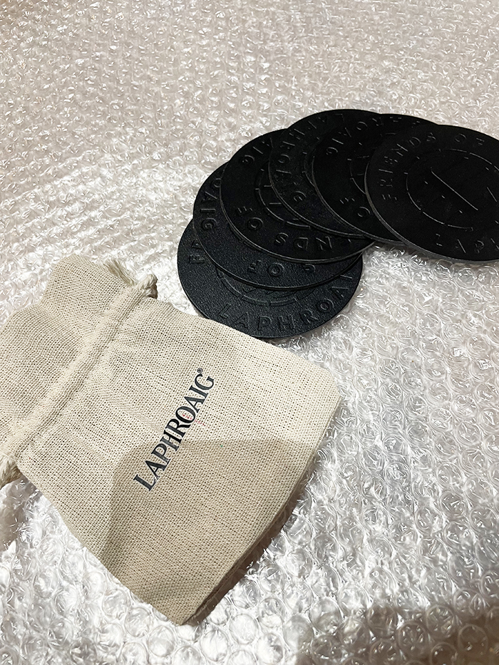 Laphroaig(ラフロイグ)合皮コースター6枚セット 袋付き(刻印新ロゴ)